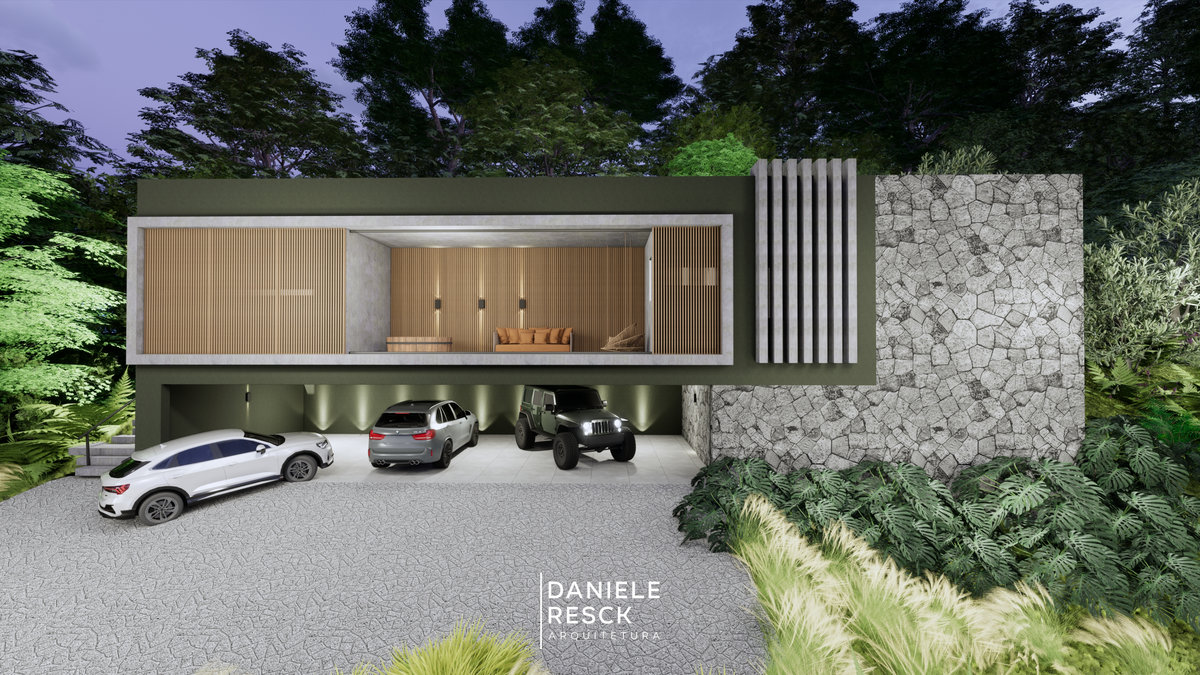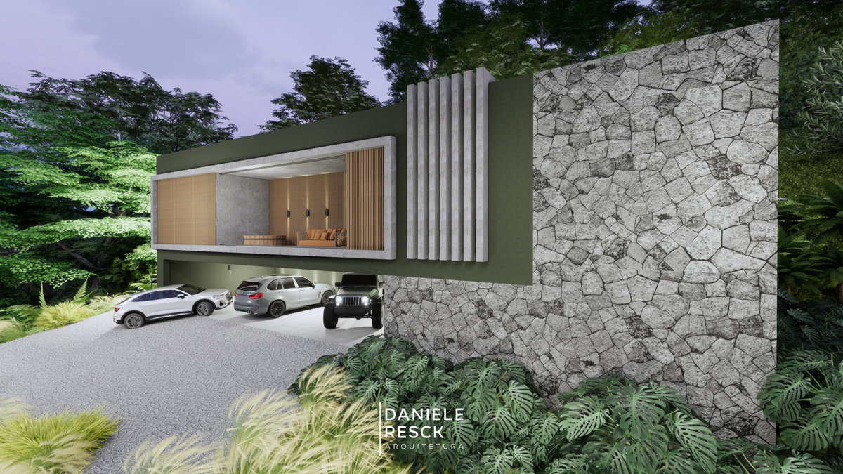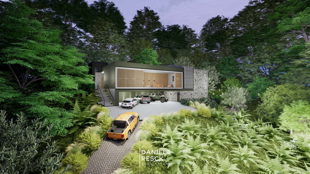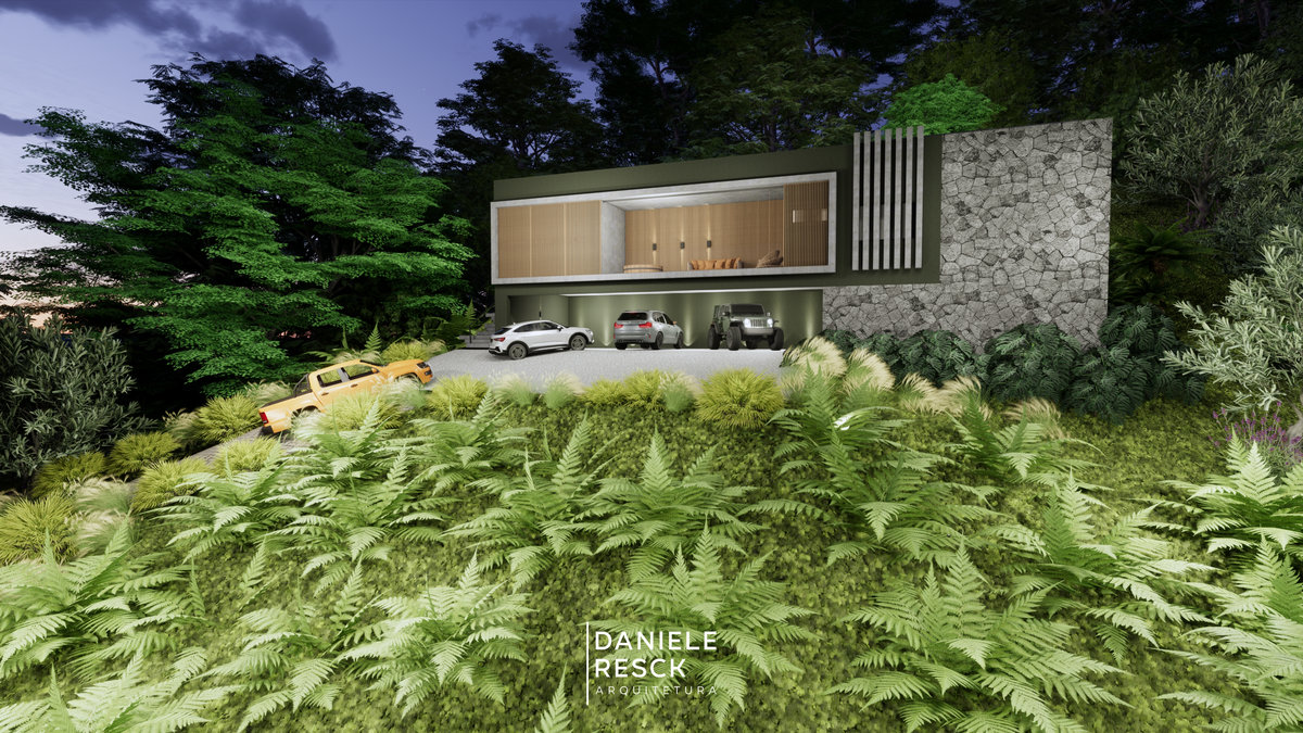 Casa projetada para uma família de 3 pessoas com um estilo moderno e compacto de viver . Uma fachada moderna com elementos retos e revestimentos amadeirados valorizam a fachada . O térreo foi implantado na parte mais alta do terreno e a garagem no subsolo aproveitando o desnível do terreno . O objetivo foi desenvolver um projeto compacto, com ambientes integrados que unam área social e lazer, ficando a área intima no segundo pavimento. O Intuito do sobrado foi favorecer toda a área de lazer e uma área de 330 m2 de pomar e um pequeno bosque deixando a natureza em destaque!